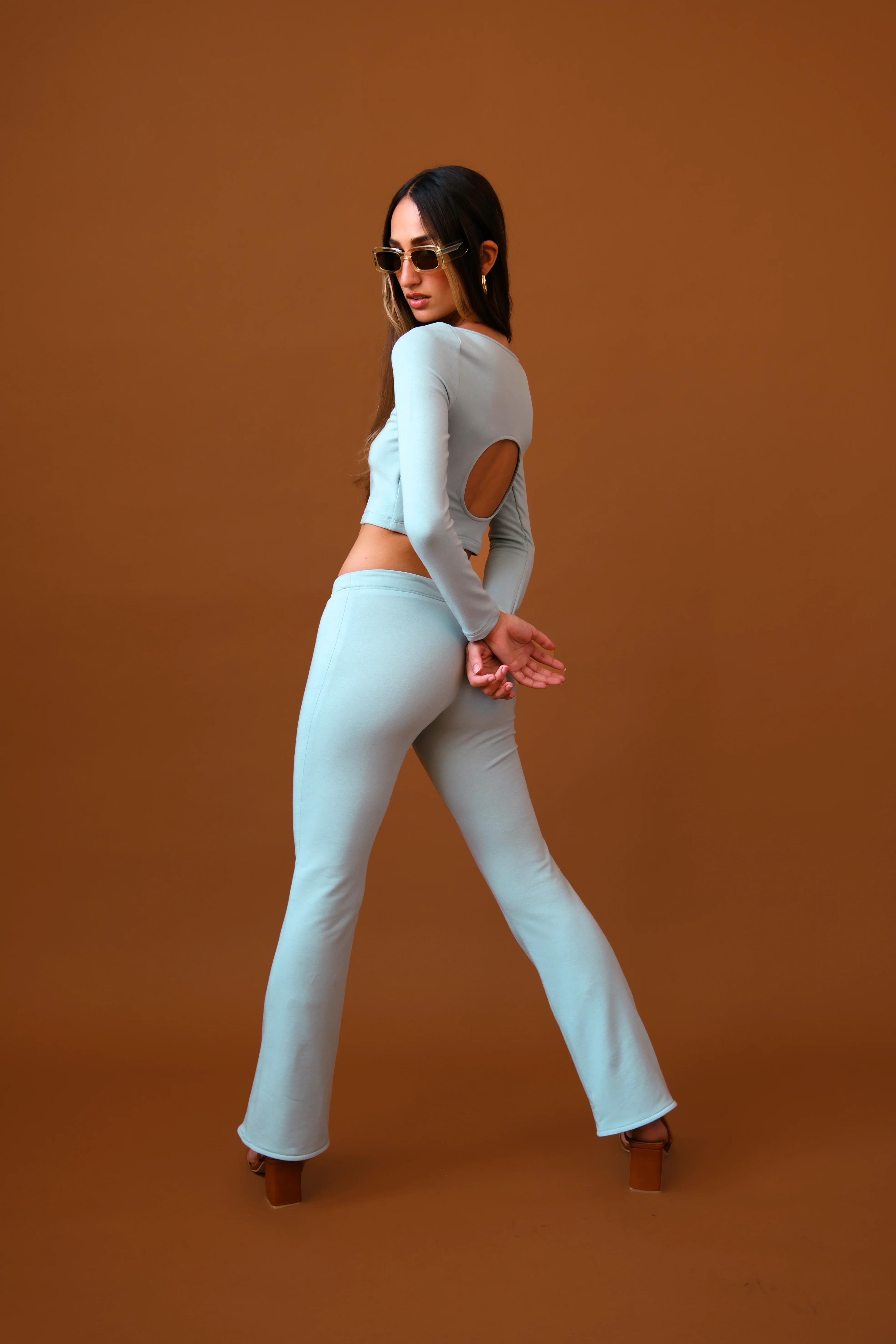 Whether you're facing long, air-conditioned, office days that demand extra stretch or bustling errand-filled days where effortless chic is a must, the Gabriela Circle Long Sleeve Top is your perfect girl. She brings a geometric twist to the classic cropped long sleeve. Available in our newest colorway Dust Blue, you'll make a statement while fitting right in.